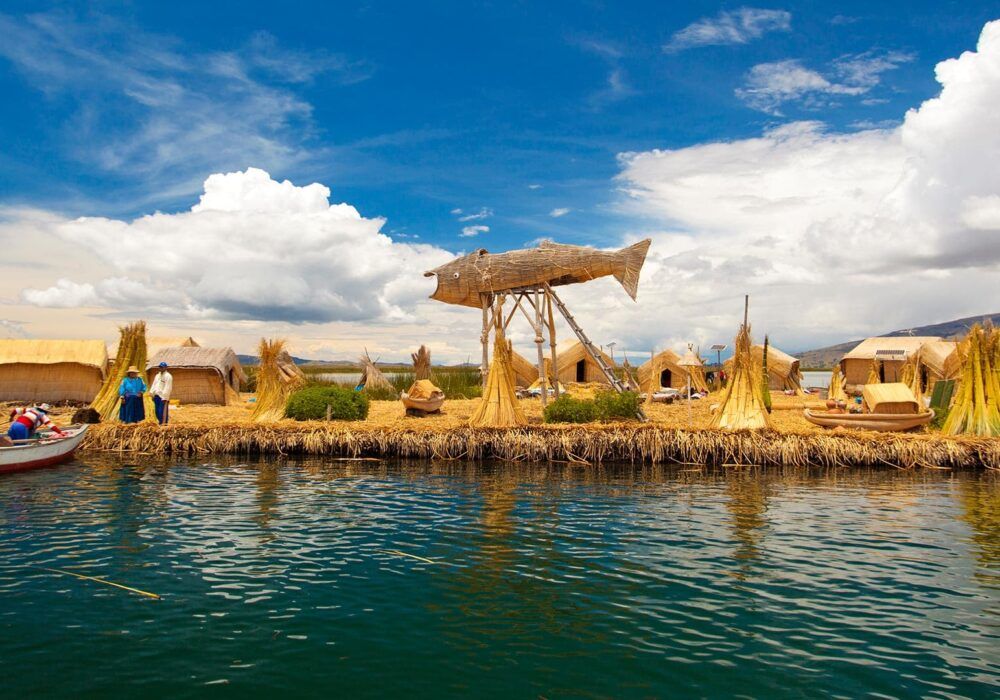 Están construidas con totora gracias a un paciente, diestro e interminable entretejido. Esta tradición milenaria se renueva cada dos meses para evitar la desintegración de las islas artificiales. Los pobladores mantienen sus costumbres ancestrales como la pesca en balsas de totora. Son más de 80 islas aproximadamente, habitadas por familias Uro-Aymaras, quienes construyen y techan sus casas también con esteras de totora.