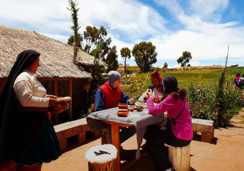 Al día siguiente después del desayuno, las familias nos llevaran al puerto para despedirse, luego partiremos rumbo a la isla de Taquile, el trayecto tiene una duración de 1 hora. En Taquile usted disfrutara de una agradable caminata, durante esta caminata visitara la plaza principal, donde tendrá tiempo libre para poder visitar las tiendas de artesanía; y ver los tejidos de la isla, también visitara a una familia local donde aprenderá un poco acerca de sus costumbres, luego disfrutaremos del almuerzo, después continuaremos la caminata hacia el segundo puerto de la isla y abordaremos nuestro barco de retorno a la ciudad de Puno. Finalizando el tour a las 3:30 p.m. aproximadamente.