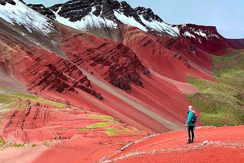 El Valle Rojo es un paisaje completamente teñido de tonos rojizos intensos, único en el Perú.